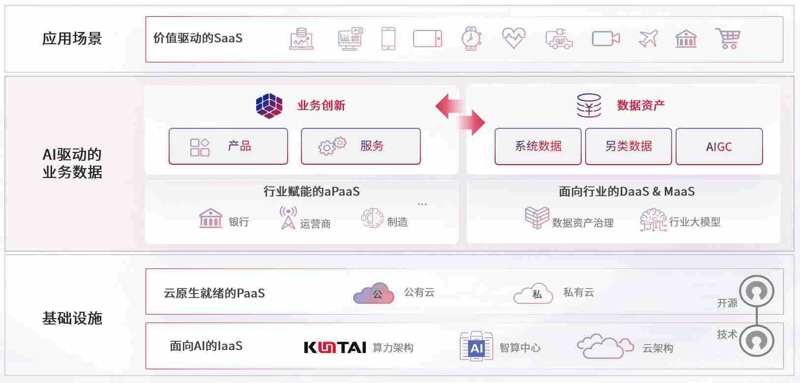 数字时代,,围绕企业数字化转型的关键要素,,赢咖3数码开创性的提出数云融合战略和技术体系框架,,,,着力在云原生、、、数字原生、、、、AI原生和信创产业上架构产品和服务能力,,,为处在不同数字化转型阶段的快消零售、、、、汽车、、、金融、、、医疗、、政企、、、教育、、、运营商等行业客户提供泛在的敏捷IT能力和融合的数据驱动能力,,,,构建跨界融合创新的数字业务场景和新业务模式,,,,助力企业级客户建立面向未来的核心能力和竞争优势,,,,全面推动社会的数字化、、、、智能化转型升级。。。
