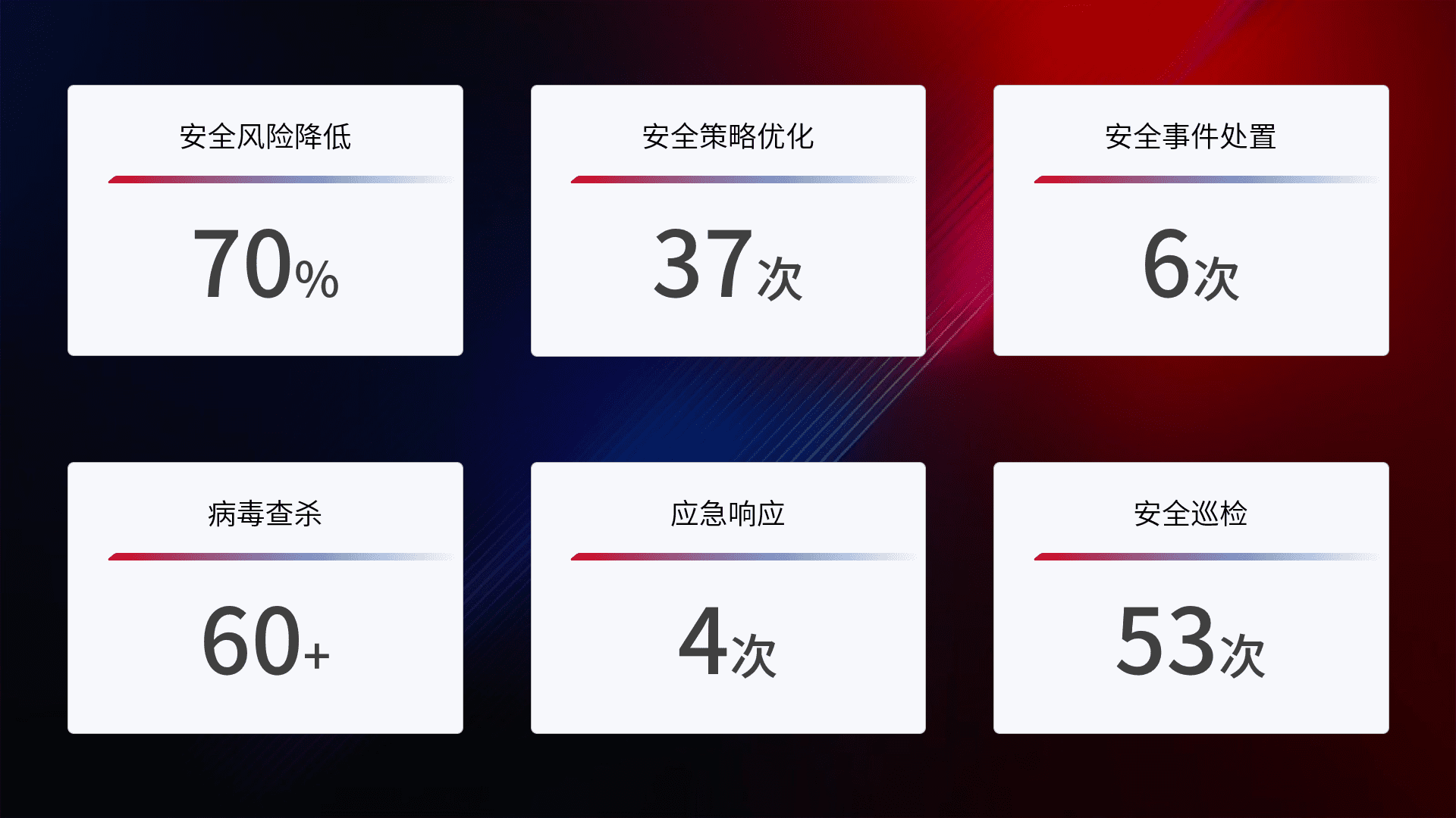 提供全面的安全事件报告体系,,,,包括处置报告、、、周报、、、、季度和年度总结,,,,结合持续监控,,,,帮助客户深入了解网络安全状况。。