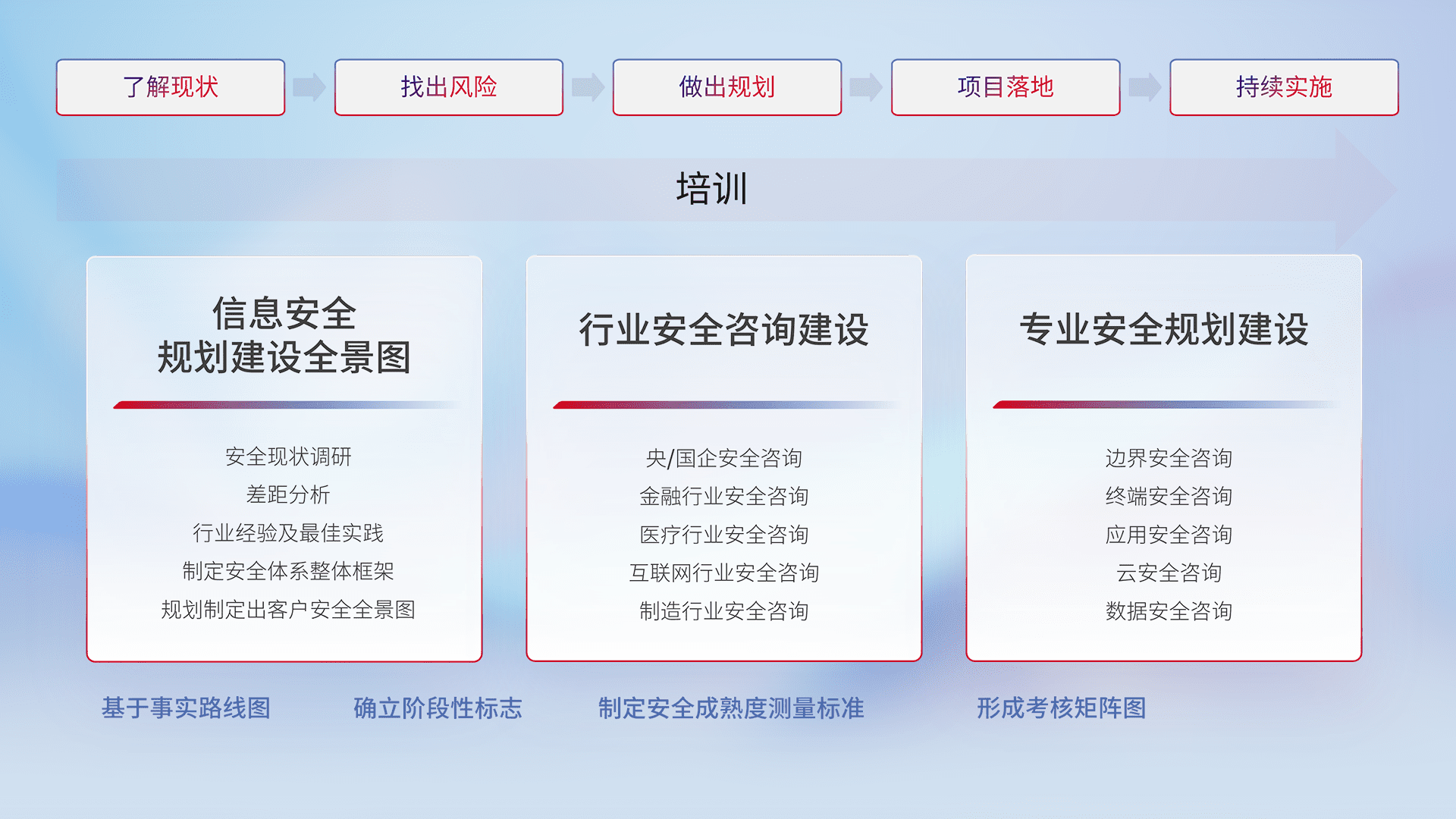 针对客户行业特性,,将宏观的安全战略和需求,,,,通过专业的交付服务,,,实现项目落地,,为客户提供标准规范的集成交付服务。。